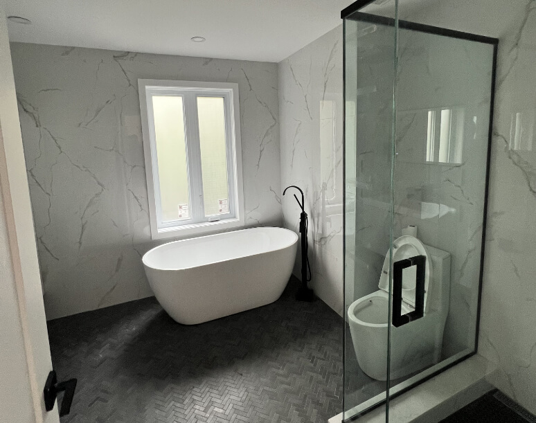 We meticulously prepare the wall to ensure the Marmorino finish is seamless, stable, and perfectly cured, showcasing the material’s innate beauty.